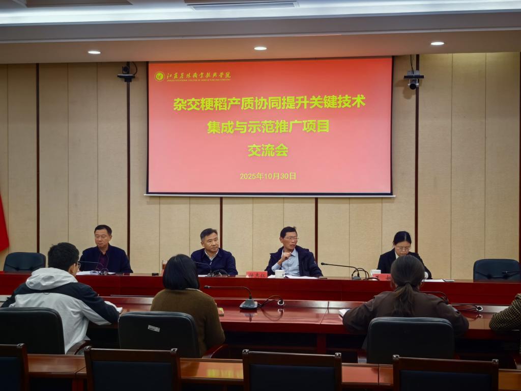 为积极融入江苏省农业现代化发展进程,全力助推镇江市优质稻米产业增强核心竞争力,10月30日,我院于综合楼九楼会议室举办杂交粳稻技术集成项目推进交流会。镇江市农业推广站站长钟志仁受邀出席交流,学院党委副书记、院长潘永圣,江苏省作物学会秘书长杨宝林,农学园艺学院相关负责人以及稻麦科组教师代表共同参会。
